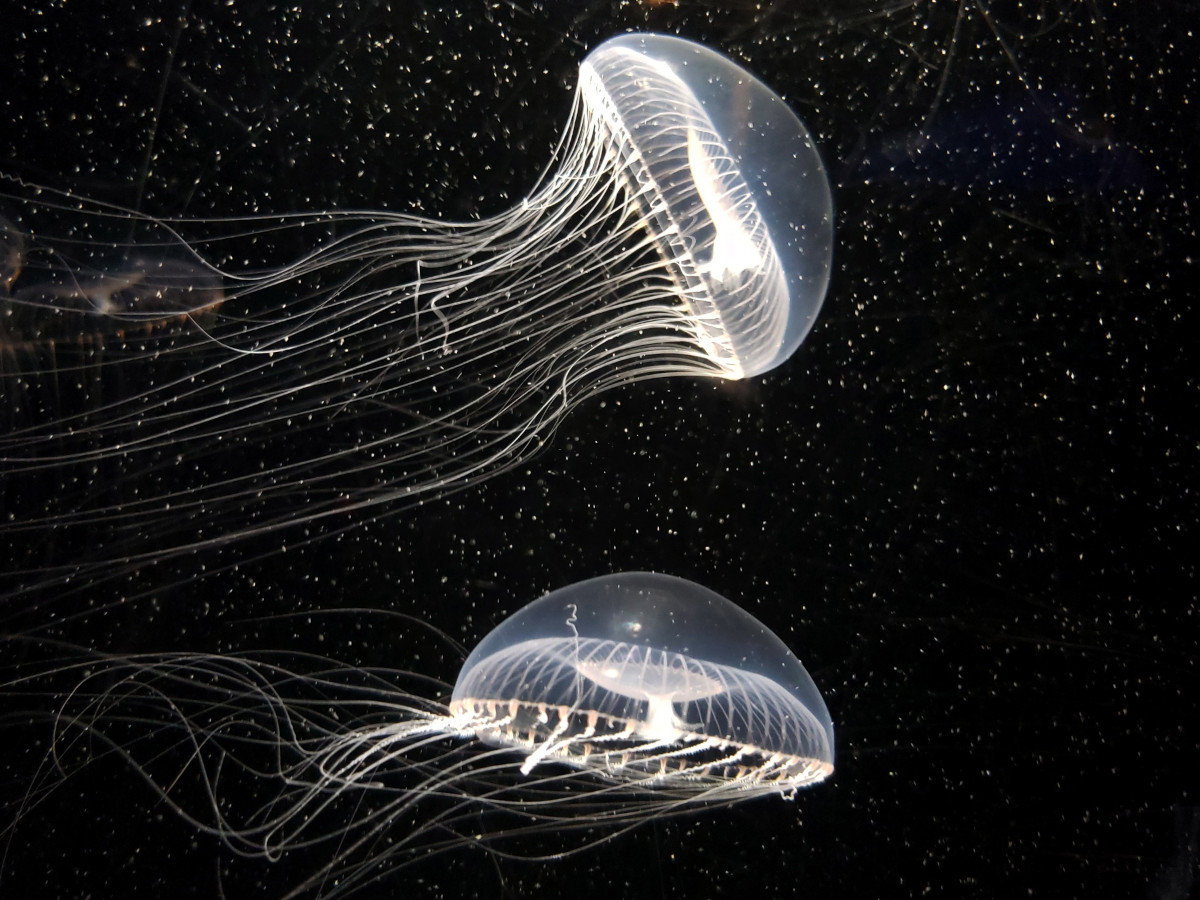 - Two white jellyfish in dark waters. Public Domain Pictures.net. https://www.publicdomainpictures.net/en/view-image.php?image=311146&picture=jellyfish