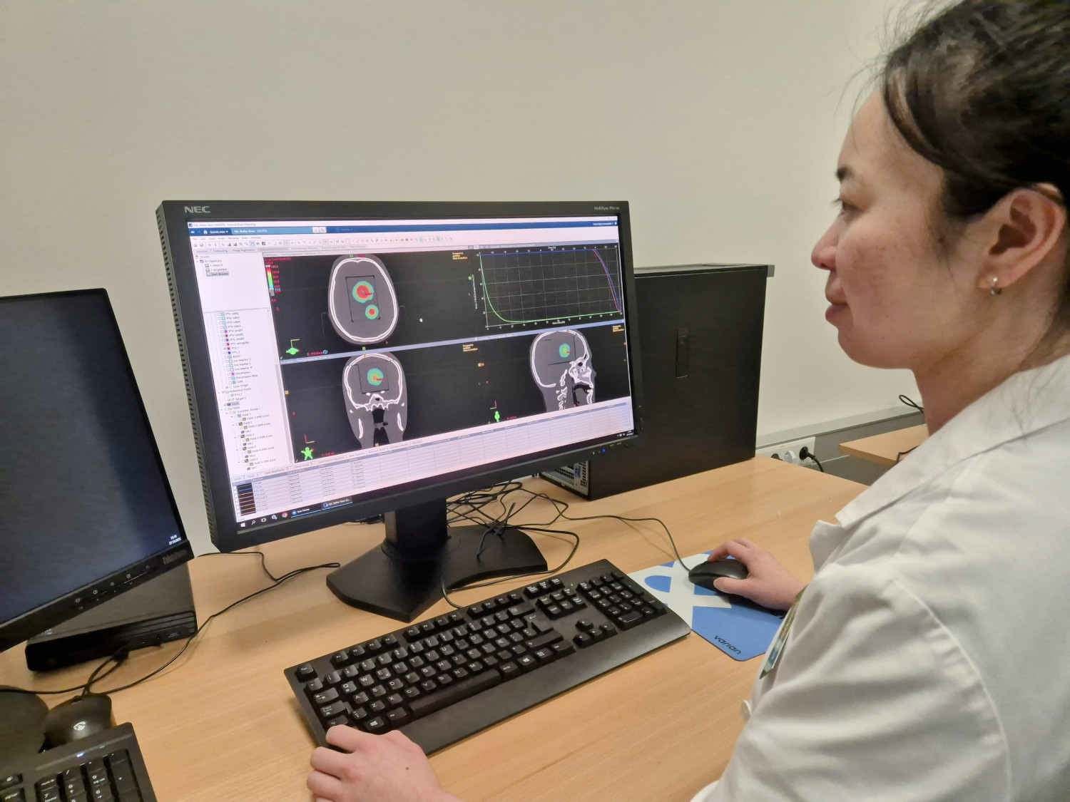 Eðlisfræðingur við störf á geislameðferðardeild.