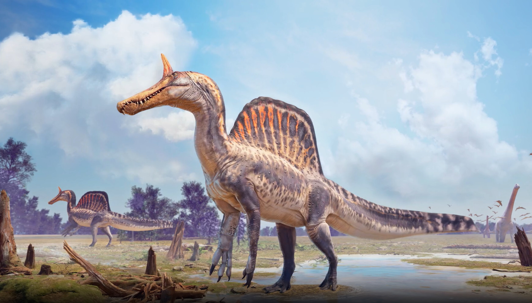 Spinosaurus mirabilis var töluvert stór risaeðla með myndarlegan beinkamb á höfði og segl á baki.